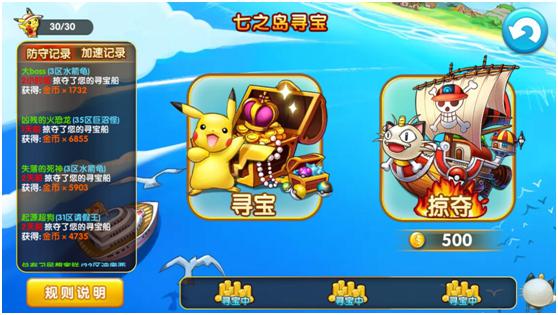 《战斗吧!精灵》收获完出海巡航的宝藏船后看了这几天的防守记录,决定出海寻船做海盗去,每天被别人掠取劫船,今天也过了一把海贼的瘾。
