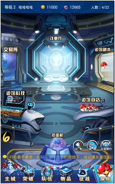 道馆的设定,就是促进玩家间交流的最好去处。《宠物大乱斗》游戏中的道馆做得非常精美和全面。内部包含有议事厅道、馆科技、道馆副本、道馆商店、交易所、扭蛋机几个重要组成部分。在扭蛋机可以用金币或者钻石来建设公会从而获得个人贡献,每天分别有1-3次的贡献机会。公会商店则会出售原油包、能量块包、善恶令、装备升星石、精灵等重要物品。道馆副本为玩家们提供了真人互动的环节,将为玩家开启全新的挑战,同时也为了提升游戏里人与人之间的相互合作关系,培养玩家的团结之心。