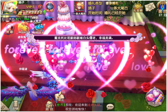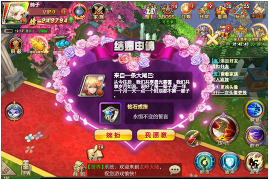 已经做好准备结婚的伙伴可以在中立区神父宣誓,并向心爱的女子发出求婚。接受后两人便可举办豪华婚宴,婚宴奖励多多,鲜花和祝福永不落幕。更可以邀请游戏里的小伙伴们一起见证,虐狗或是祝福,相信他们都会为你们开心。