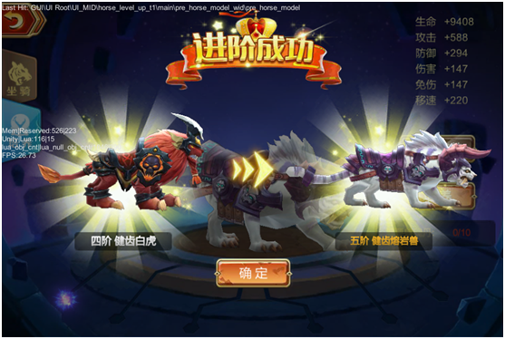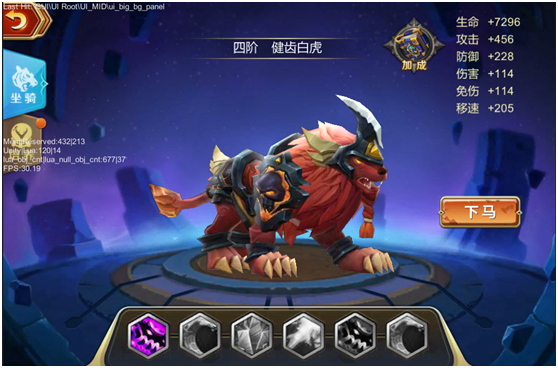 除此之外,当坐骑培养的六条进度都满了之后,还能使得坐骑成功进阶,进阶的坐骑不仅更加威风凛凛,还能够触发隐藏的被动技能,让玩家不需要繁琐的操作,就享受到驯养猛兽带来的无限增益。妈妈再也不用担心我只是一个铲屎官啦!