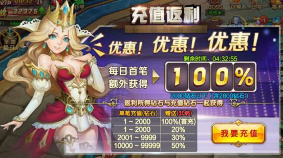 4.返利所得钻石不算入VIP经验,不算入累计充值活动。