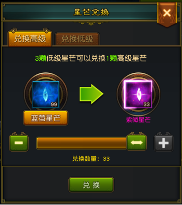 所获得的星芒,可以通过“星芒转换”,通过一定比例将低品质的星芒转换为高品质的星芒。