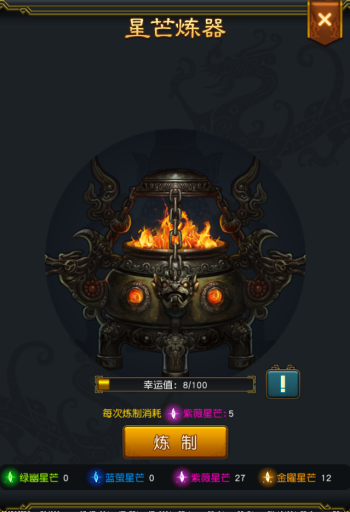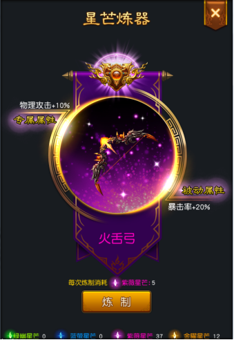 获得的星芒大有用处,消耗一定数量的不同品质的星芒,可以炼制不同级别的兵器。