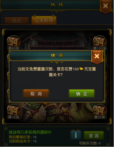 2. 玩家每天可以免费重置一次,之后可以花费一定的元宝进行重置。