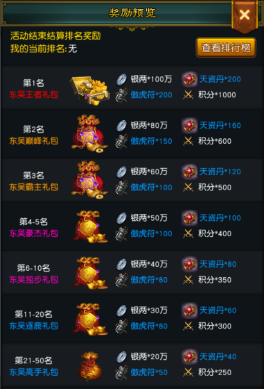 4、在玩法结束后,将会根据排行榜发放丰厚的奖励。