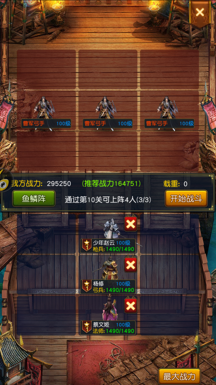 2、每个玩家在每周第一次进入关卡时,均会获得系统给予的三个初始武将进行战斗。