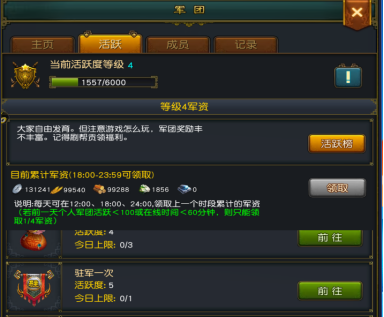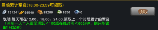 前一天活跃度不够100,只能领取四分之一军资!非常不划算。