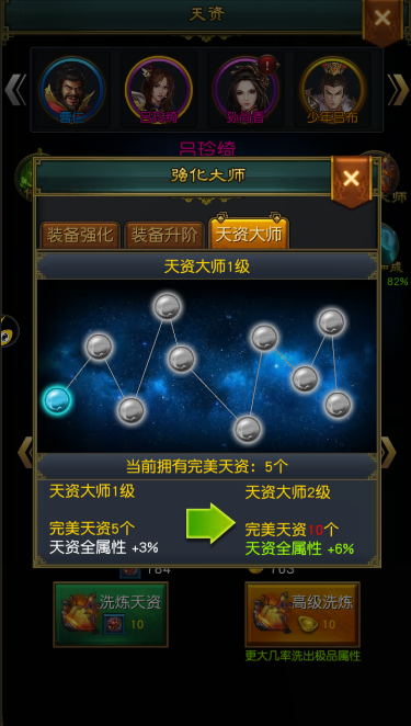 武将每升一级,可激活一个新的天资,激活天资会给武将增加相应的属性,天资完美度越高所加的属性也越多;