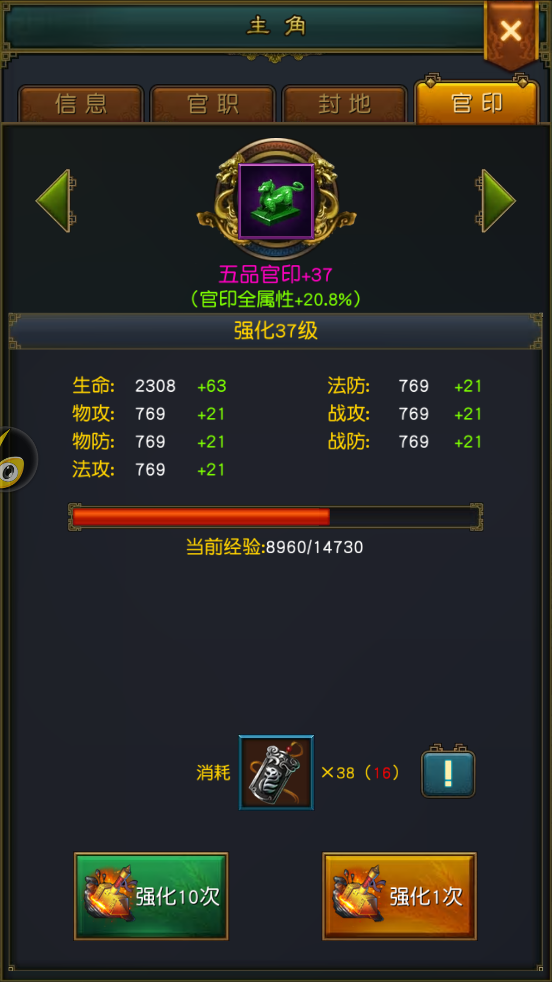 通过强化神兵可获得大量的属性加成,当神兵强化值满后可进行升星,升星可激活解锁新的特有属性;