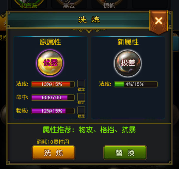 可以对洗出的属性进行锁定,下次洗练时,该属性不会参与洗练。