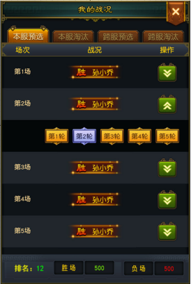 2. 本服赛和跨服赛均分为预选赛和晋级赛,每场战斗可使用3队战斗车轮战,直至本场战斗决出胜负