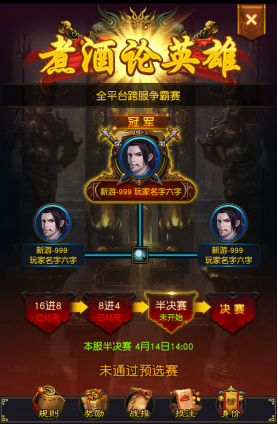 1. 本玩法分为本服赛和跨服赛,本服赛的16强可以参加跨服赛