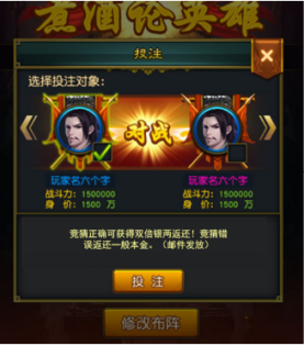 1. 所有玩家均可使用银两进行投注竞猜获胜选手,投注时间为在晋级赛开始匹配到比赛开始这段时间内