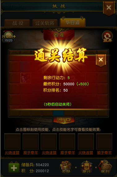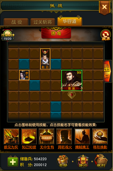 5、将曹操移至出口处才可通关,且每移动一次曹操,消耗一点行动力;