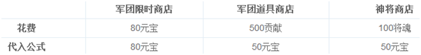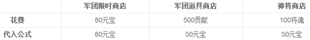 表格中列出的算是最便宜的了,再贵的咱就不提了,可以看出在声望商店购买时最划算的,一天可以购买300个突破石,其次是神将商店用将魂购买。