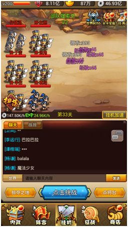 在游戏“挂机”页面,点击挑战就可以开始推图了
