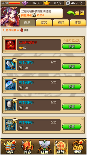 燃烧远征21级开启,是武将神装的主要产出点,玩家挑战燃烧远征时,每3个副本为一组,每组闯关成功都会给予一定的闯关奖励。且在下一组挑战开始之前均会让玩家挑选一次buff增益,挑选buff增益的时候需要消耗玩家本轮挑战的所有星数,所以需要玩家根据需要仔细筛选。